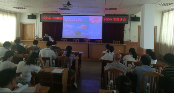 图为旅游服务业相关管理、从业人员在兴安工商质监局参加标准化培训