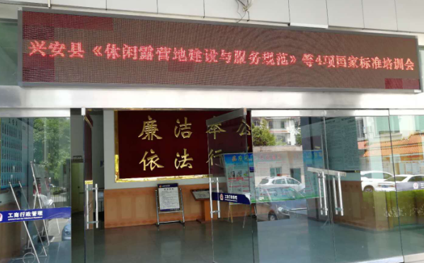 图为兴安工商质监局召开标准化培训会的电子滚动屏幕