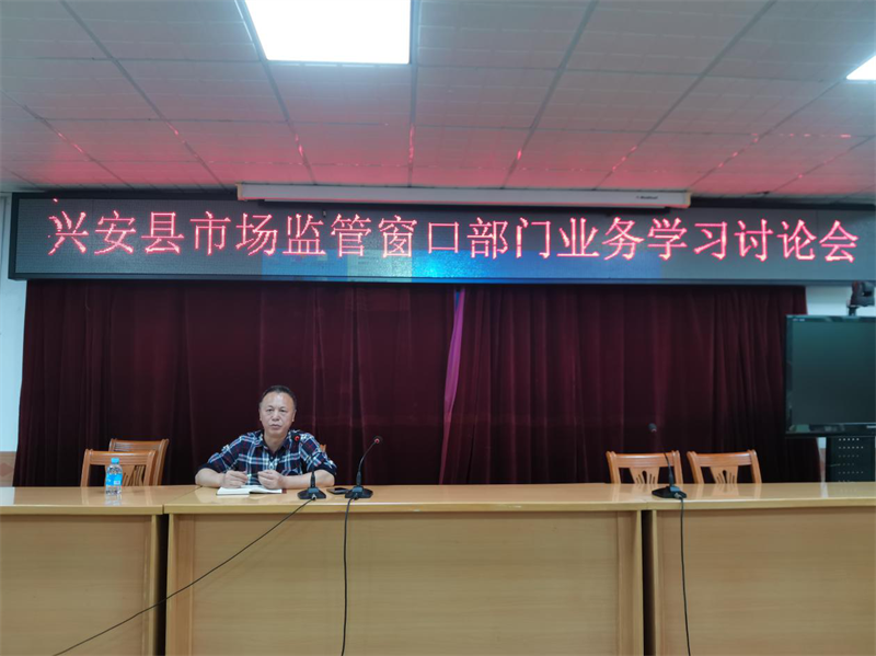 学习讨论会上,邹喜明副局长首先强调了此次会议的重要意义,希望全体参会人员通过参加此次学习讨论会,把为人民群众提供最优质的服务作为自我价值实现的标尺,树立市场监管优质服务形象,为兴安县民营经济的发展贡献力量。