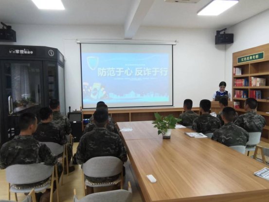 银行工作人员通过PPT演示的方式,为部队官兵宣讲反诈骗和金融知识,详细介绍了刷单返利、虚假网络贷款、冒充电商物流客服、冒充公检法、虚假征信等多种电信诈骗手段,并提出行之有效的防范建议。宣讲中,工作人员就武警官兵关心的金融知识和投资理财等问题进行了逐一解答。部队官兵和工作人员问答互动,积极交流,现场气氛十分活跃。