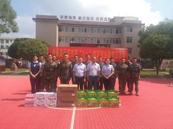 活动结束后,广西北部湾银行兴安支行为部队官兵送上牛奶、水果、抽纸、矿泉水等慰问品,并致以崇高的敬意和节日的祝福。
