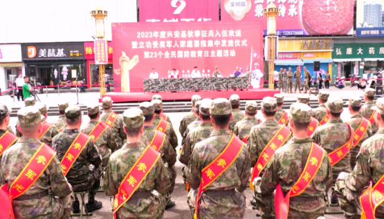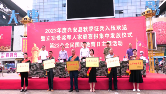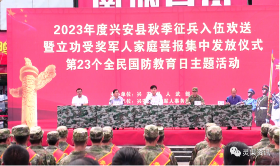 热血男儿赴征程,励志军营献青春。9月15日上午,我县2023年度秋季征兵入伍欢送暨立功受奖军人家庭喜报集中发放仪式第23个全民国防教育日主题活动在县银杏广场举行。