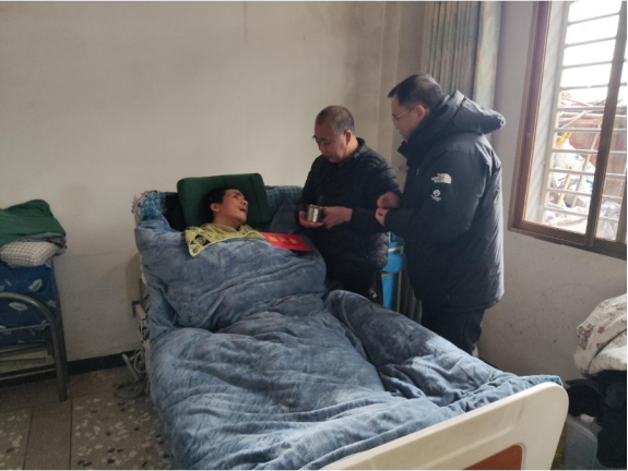 在伤残军人唐建军家中,阳松仔细了解其目前的身体状况,享受哪些政府补助,生活中存在什么困难,并叮嘱工作人员一定要做好定期走访慰问,帮助唐建军家庭及时解决生活困难。临行之际,慰问组向唐建军家庭送去了慰问金和大米、食用油等慰问品,嘱咐他们要保重身体,度过一个温馨祥和的春节。