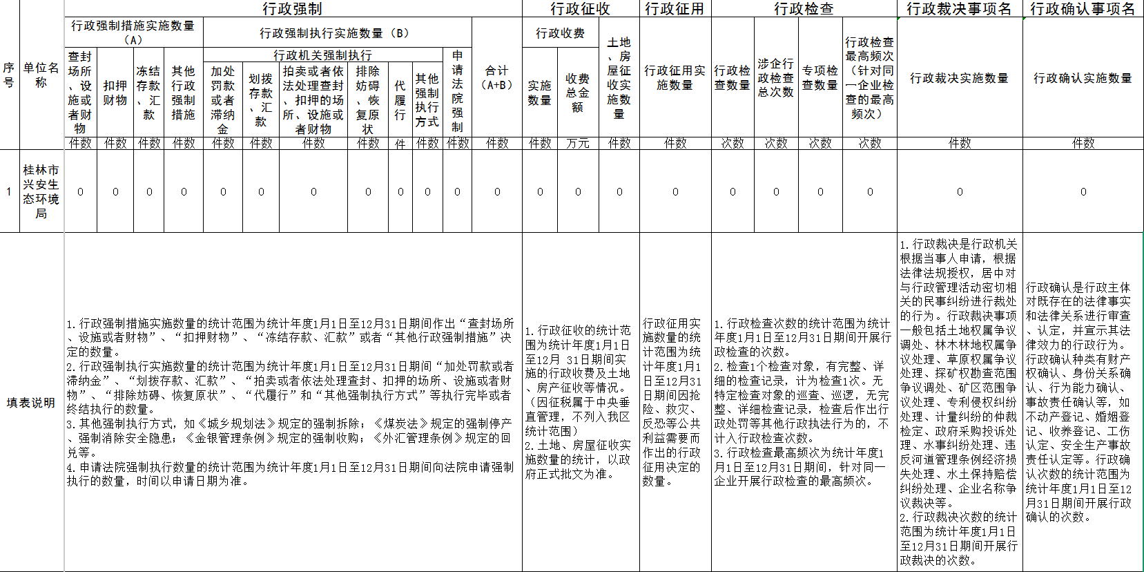 桂林市兴安生态环境局行政执法数据统计年报表